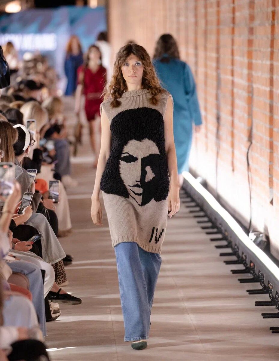 Коллекция бренда Loom Weaving (Армения) на подиуме Московской недели моды Бренд Loom Weaving представил коллекцию, в которой переосмыслено наследие конца 1960-х и начала 1970-х годов через образы известных женщин того времени. Команда сочетала богемный шик с контрастным трикотажем. Основными изделиями стали юбки-сетки с джемперами, водолазки с замшевыми юбками и укороченными пончо, вязаные брюки с приталенными жакетами и туники в оттенках бежевого, зеленого и розового. Силуэты свободные и удобные. Детали включают вышивку и аппликации.