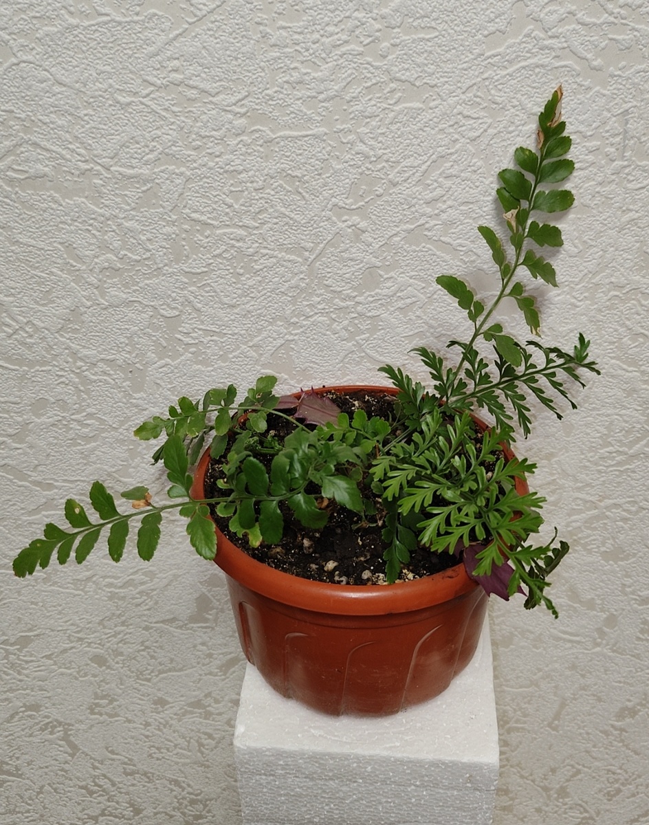 Добро пожаловать в домик бурундучка. Чего только не обнаружится на моих подоконниках. К папоротникам была равнодушна ещё год назад. А потом на глаза попалась Даваллия с мохнатыми лапками. Долго её искала. Попутно, в начале лета совершенно случайно приобрела в уценке Асплениум. Довольно облезлый. Сразу обработала и пересадила в смесь торфогрунта с перлитом. Добавила в грунт несколько гранул конского оргавита. Вскоре полезли новые вайи. Интересно, почему новые листья похожи на морковкины? А старые - на петрушкины... Даваллию я тоже нашла. На рынке в Сочи. Домой растения прилетели в ручной клади. Очень хотелось, чтобы после поездки новички быстро освоились. Но корни выглядели не очень живыми. А через пару дней Даваллия скинула 2 листа. На третьем начали подсыхать кончики. После покупки я растение ещё не пересаживала. Грунт меня вполне устраивает. Там что-то универсальное, магазинное. Подсыпала только сверху, чтобы прикрыть корни, немного торфогрунта с перлитом. Обработала и поставил
