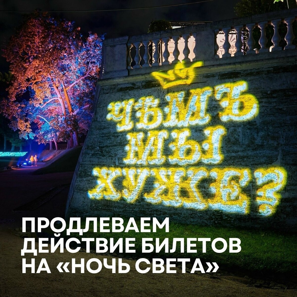 В Гатчине из-за плохой погоды продлили действие билетов на «Ночь света». Об этом сообщает пресс-служба музея-заповедника «Гатчина». «Не смогли прийти сегодня? Ваш билет на 29 августа будет действителен и завтра, 30 августа. Важное условие! Билет не должен быть использован (погашен)», – уточнили в пресс-службе музея. Ранее сообщалось, что в Гатчине проходит фестиваль световых инсталляций. Маршрут занимает 5 километров.