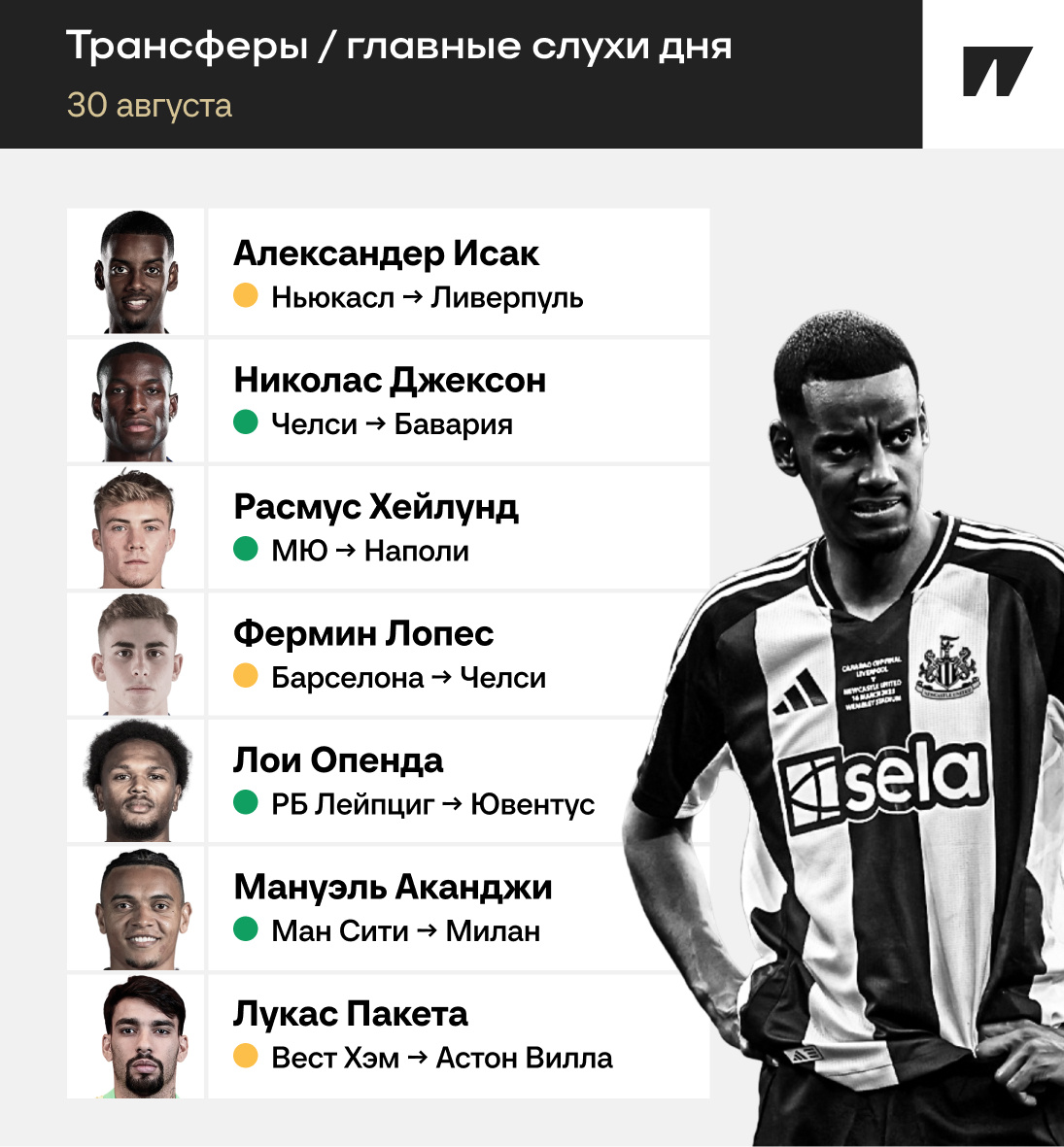 Днем ESPN сообщил, что Александер Исак все-таки добился трансфера в «Ливерпуль» – сделку оценили в 150 млн евро. Ранее «Ньюкасл» отклонил предложение на 138 млн, оценивая Исака в 170+ млн.