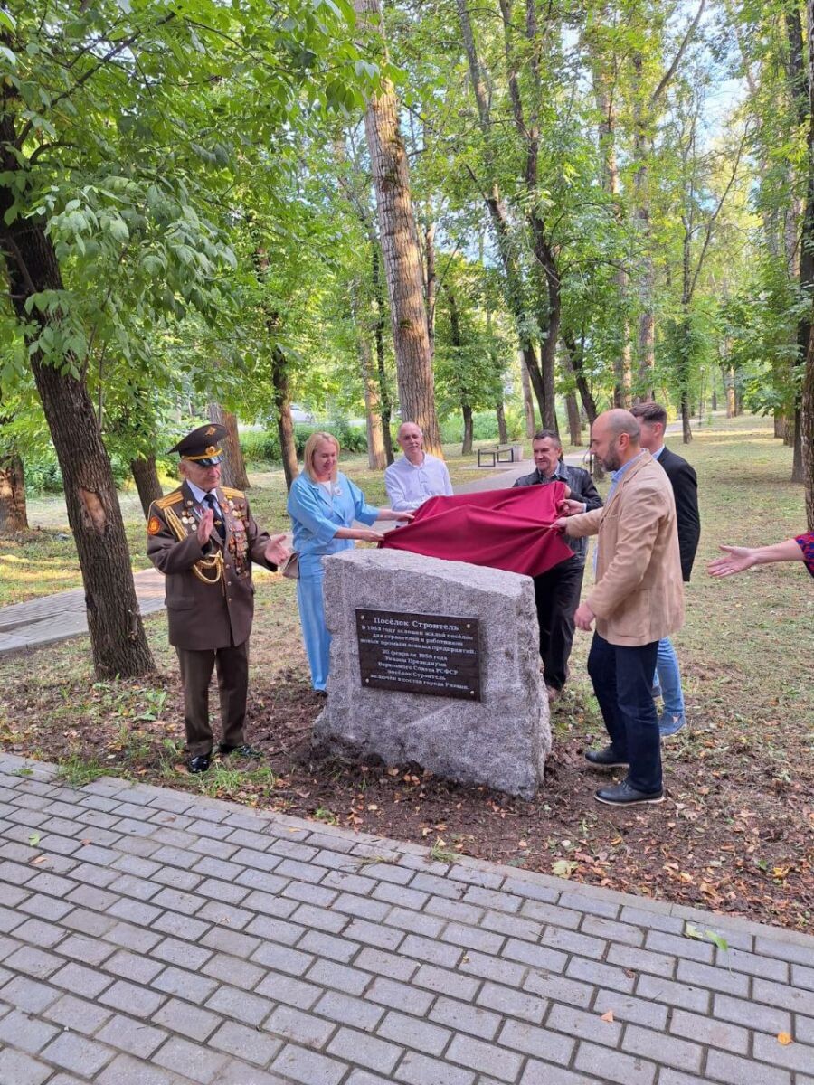 В посёлке Строитель в рамках Дня города открыли памятный знак о зарождении посёлка и присоединении его в 1958 году к Рязани. Об этом сообщает администрация города.