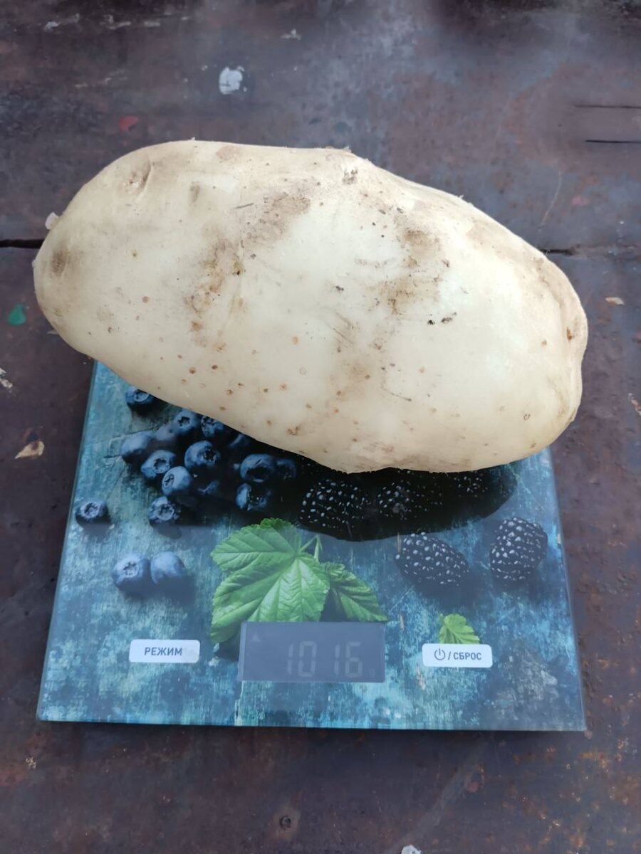 В селе Хмелинец Задонского района местный житель вырастил на своём огороде необычный картофель весом 1 кг 16 г. В этом году урожай оказался особенно богатым — средний вес одной картофелины начинается от 200 граммов.
