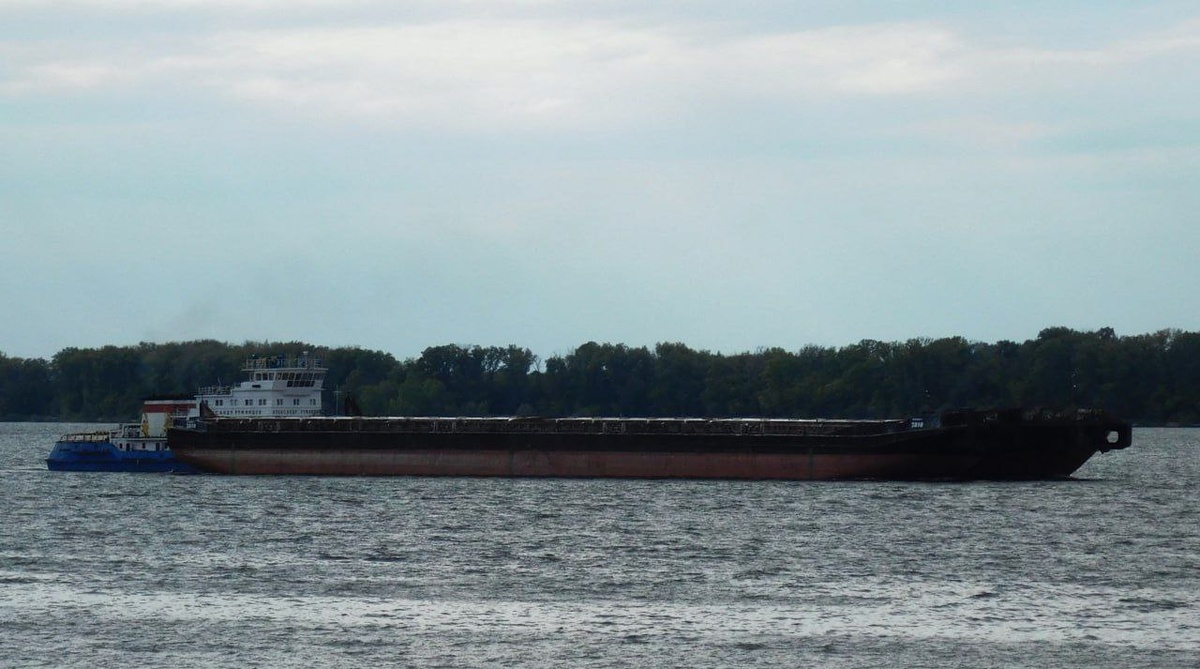 Толкач-буксир Александр Румянцев на Волге, проходит Самару.