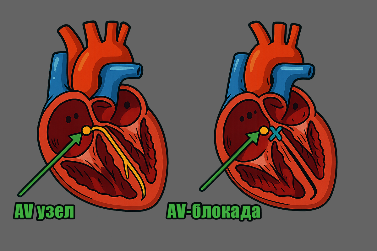 Сердцу нужны правильные электрические сигналы, чтобы качать кровь эффективно. При выраженной АВ-блокаде сердце может работать медленнее, чем нужно, что вызывает слабость, головокружение или потерю сознания. В ряде случаев требуется лечение, вплоть до установки кардиостимулятора.