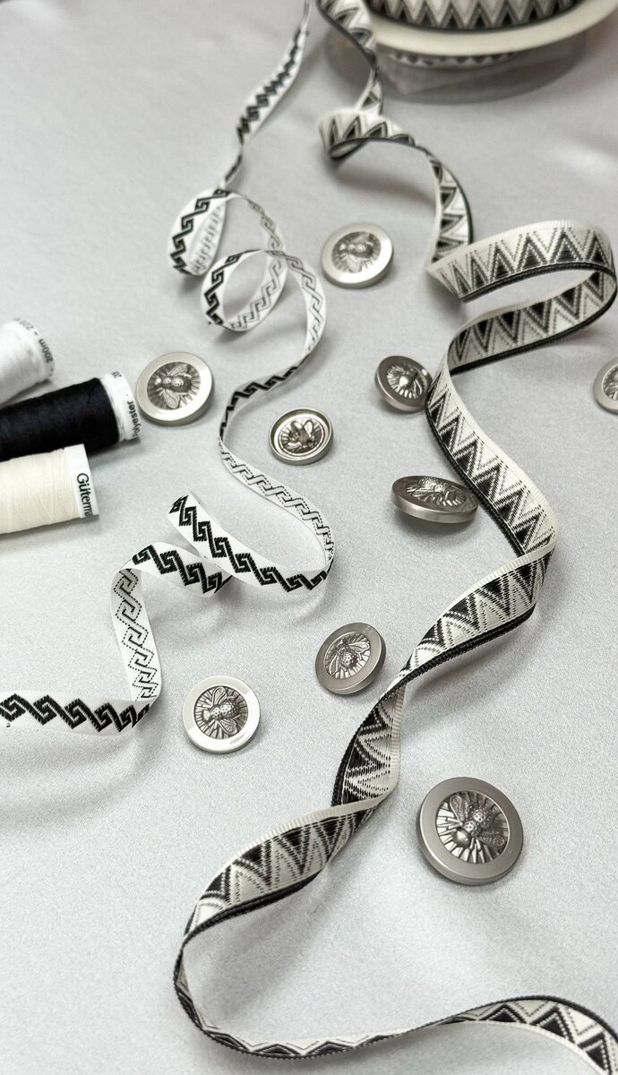 Графичная черно-белая тесьма: Тесьма 15 мм - 178₽/м Тесьма 9 мм - 122₽/м Производство: Италия. Металлические пуговицы на ножке Gucci. Диаметр 23 мм - 197₽/шт Диаметр 15 мм - 147₽/шт Будем рады оформить для Вас заказ. На первый заказ мы дарим Вам скидку 10% Для заказа пишите пожалуйста нам в телеграмм с волшебной фразой «Пришла из Дзен» Ссылка на наш телеграмм канал: Ждём Вас ежедневно, с 10:00 до 20:00 По адресу: г.Москва, ул. Мневники д. 6, п.6