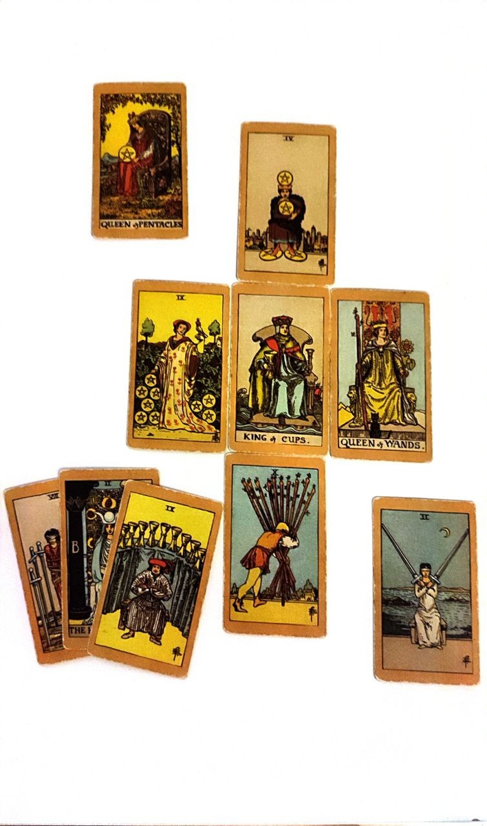 В вас он видит женщину огня — уверенную, страстную, притягательную. Но он прячет это восхищение, словно боится обнажить своё желание и показать, насколько сильно вы зажигаете его сердце. 🔮 4. Что показывает: 9 пентаклей