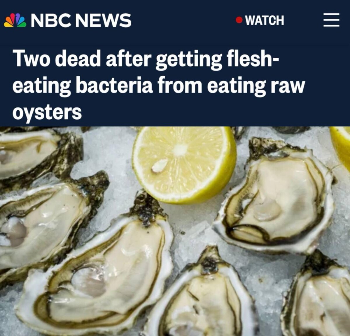Привет, друзья! «Привет, друзья! Сегодня я хочу поговорить с вами о ситуации, которая может показаться довольно неожиданной и даже пугающей — устрицы могут быть смертельно опасны. Да-да, вы не ослышались. В Луизиане два человека погибли после заражения плотоядными бактериями, которые обитали в сырых морепродуктах. Представьте себе: вы наслаждаетесь вкусом устриц, а в это время в вашем организме могут происходить опасные процессы. Особенно тревожно то, что опасные микроорганизмы обитают в тёплых прибрежных водах и чаще всего активны с мая по октябрь. Как это возможно? Всё дело в том, что заражение происходит при употреблении сырых или плохо обработанных устриц. Но это не единственный путь. Бактерии могут попасть в организм и через открытую рану. С начала года зафиксировано уже 22 подобных случая, многие из которых закончились госпитализацией. Это, безусловно, вызывает серьёзную обеспокоенность. Но не стоит впадать в панику и отказываться от морепродуктов навсегда. Важно просто быть в ку