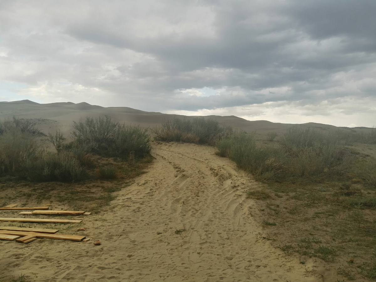 Тыва – сравнительно небольшой регион РФ, однако, проехав всего 100 км. в одну или в другую сторону, можно попасть в совершенно разные климатические зоны. Есть здесь и тайга с глухим сосновым лесом, и степь с курганами, есть и знойная пустыня. Причем пустыней несколько, но самая доступная для туристов, куда обычно любят возить гиды – это пустыня Ийме. Свое название она получила от рядом расположенного населенного пункта – села Ийме. Село относится к Дзун-Хемчикскому кожууну (району) Тывы, расположено в 260 км. от столицы республики – города Кызыла. До пустыни из Кызыла есть две дороги, основная ведет по хорошей трассе до города Чадан – родины С.Шойгу, где при въезде вас встречает его большой портрет и можно посетить Дом-музей семьи Шойгу. После Чадана в сторону села Ийме ведет уже гравийка, километров 40, причем очень некомфортная, машину хорошо трясет. В дождливую погоду сюда ехать не рекомендуется, можно увязнуть. Дорогу скрашивают виды гор на горизонте и пасущиеся табуны лошадей.