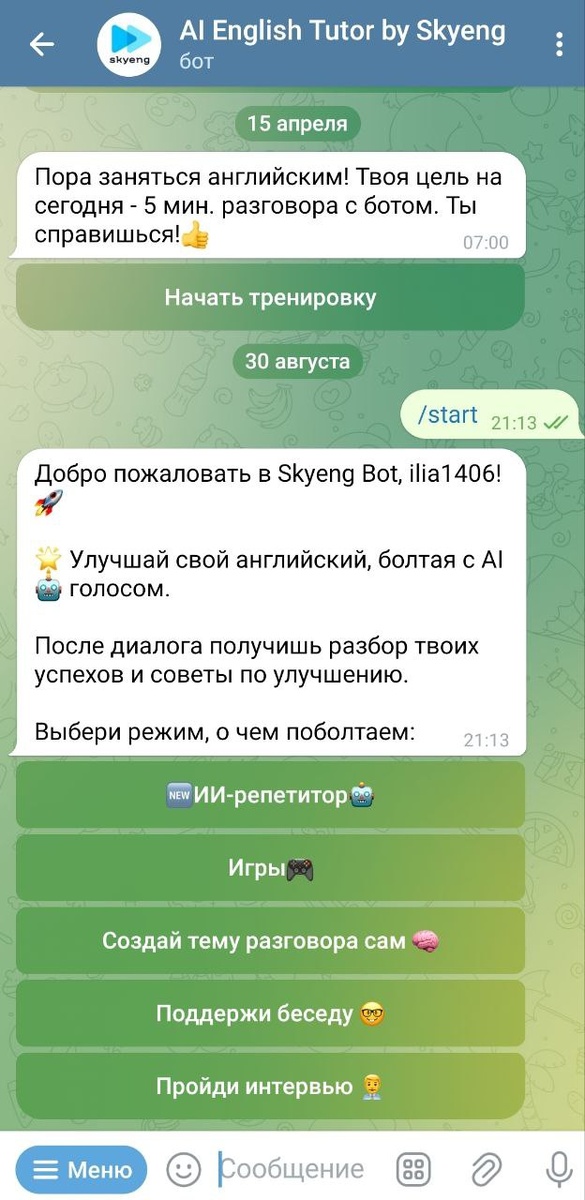 AI English Tutor от Skyeng: TG-бот, с которым английский заходит на ура, ну почти)