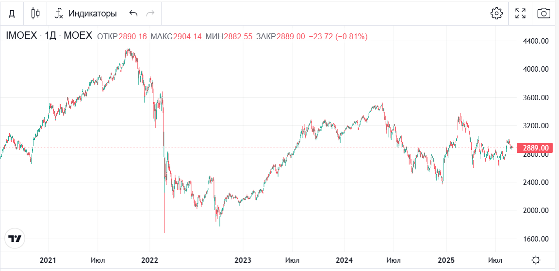 Индекс Мосбиржи (IMOEX) – это индекс, взвешенный по рыночной капитализации.