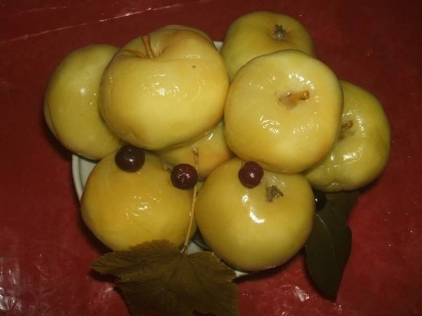 Появились яблочки, пошла смородина и чтобы нам такого с ними сотворить? А давайте просто возьмем все необходимое и продолжая разглагольствовать о высоких чувствах начнем... Кстати, что? Яблоки моченые с черной смородиной по фирменному бабушкиному рецепту хотите попробовать? Вот этим мы, пожалуй, и займемся. Смородину, листья и яблоки промываем в прохладной воде. В банки или любую другую емкость укладываем яблоки хвостиками вверх пересыпая ягодами смородины. В горячей воде размешаем соль с сахаром, доведем до кипения и оставим остывать. Яблоки укрываем ,,одеялом" из листьев в один слой и заливаем сахарно-солевой водой. Вам может понравиться: "Яблоки запеченные с клюквой" Накрываем тканью, сверху деревянный круг и груз. Убираем в холодное место. В принципе ничего сверхсложного, раньше знали что делали, да и традиции не просто так складывались. Через месяц-два, в зависимости от вашей нетерпеливости, домашние яблоки моченые с черной смородиной все ваши! Думаю зимой довольны будут все, особ
