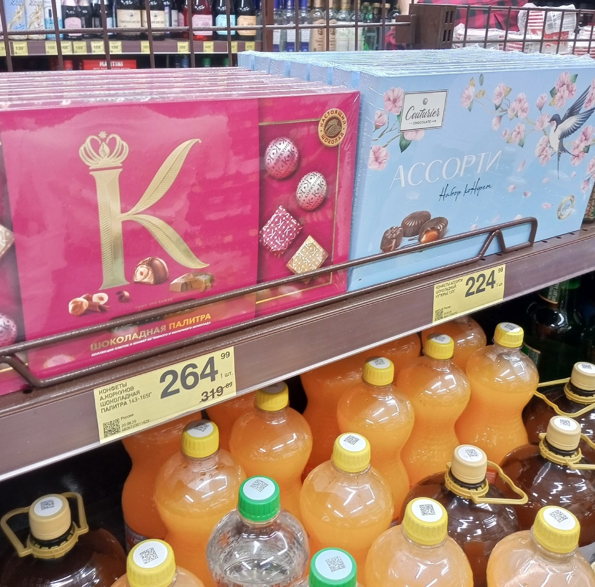 Уже много раз слышала шутку о том, что магазин "Красное&Белое" изучен буквально на 1% - каждый раз, когда приходишь сюда, удивляешься тому разнообразию ассортимента, что нынче предлагается. Это раньше все было понятно и просто: все полки заставлены всевозможными напитками на любой вкус, а теперь и продукты привозят, и бытовую химию, и игрушки, и порой даже что-то из одежды-аксессуаров бывает. Меня сначала озадачивало наличие готовых блюд, а потом я и сама не заметила, как стала приобретать практически все. что тут есть. Но нынешние новинки по-прежнему не остаются без эмоций совсем. Раньше, кстати, старались предложить что-то из продуктовых полок, а теперь и им не отводится так много внимания. Давайте я покажу вам те новинки, что встретила в магазине буквально за день до сентября, будет здорово, если вы присоединитесь к обсуждению и поделитесь своим мнением после обзора. Вполне логично, что накануне школьных праздников на полке появились новинки среди конфетных наборов, многие стараются