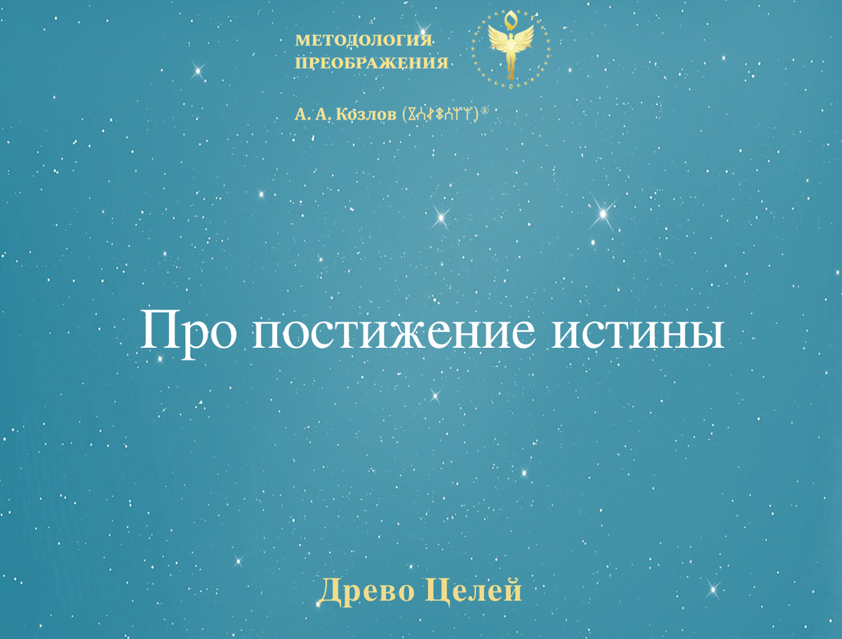 Про постижение истины. Как формируются новые ценности? Как расширяется горизонт видения? На вопросы отвечает Александр Анатольевич Козлов – автор Методологии Преображения. «Полученные знания формируют принципиально новую точку зрения человека и открывают новый уровень задач. Старые представления о том, что он является царем природы и венцом Творения уходят, на смену им приходит осознание себя как многоуровневой живой системы, малой, но неотъемлемой части единого организма Вселенной, совершающей восходящее движение в вечности и бесконечности. Человек формирует для себя новые ценности, ставит перед собой более высокие задачи и цели, стремясь к их достижению. Постижение истины – иррациональный процесс, раскрывающийся в пути восхождения и развития, человек учится взаимодействовать с ней. При соприкосновении с истиной расширяется горизонт видения, происходит выход на новый уровень полей отображения реальности. Истина при познании ее человеком становится выше, тоньше и манит непознанными и н