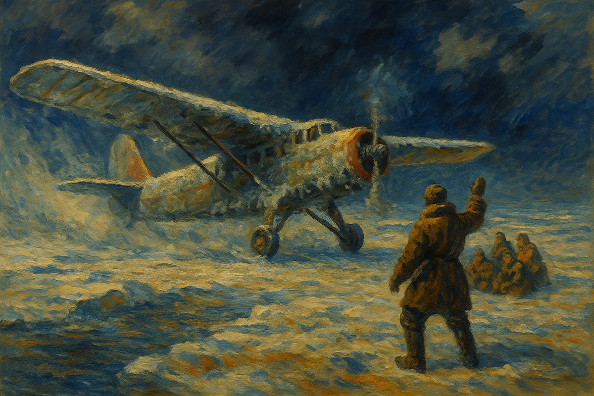 —40 °C, пурга, площадка в три раза меньше нормы. Он 28 раз промчался над ледяной пустыней — и на 29-й выцелил лагерь. Так началось самое героическое спасение в истории авиации.