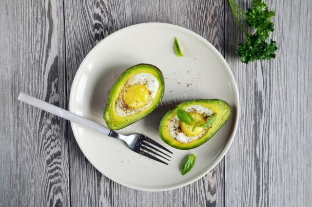 Поставьте авокадо с яйцами в разогретую духовку и запекайте около 10-15 минут. Время зависит от мощности вашей духовки и желаемой степени готовности яиц: белок должен схватиться, а желток остаться мягким.