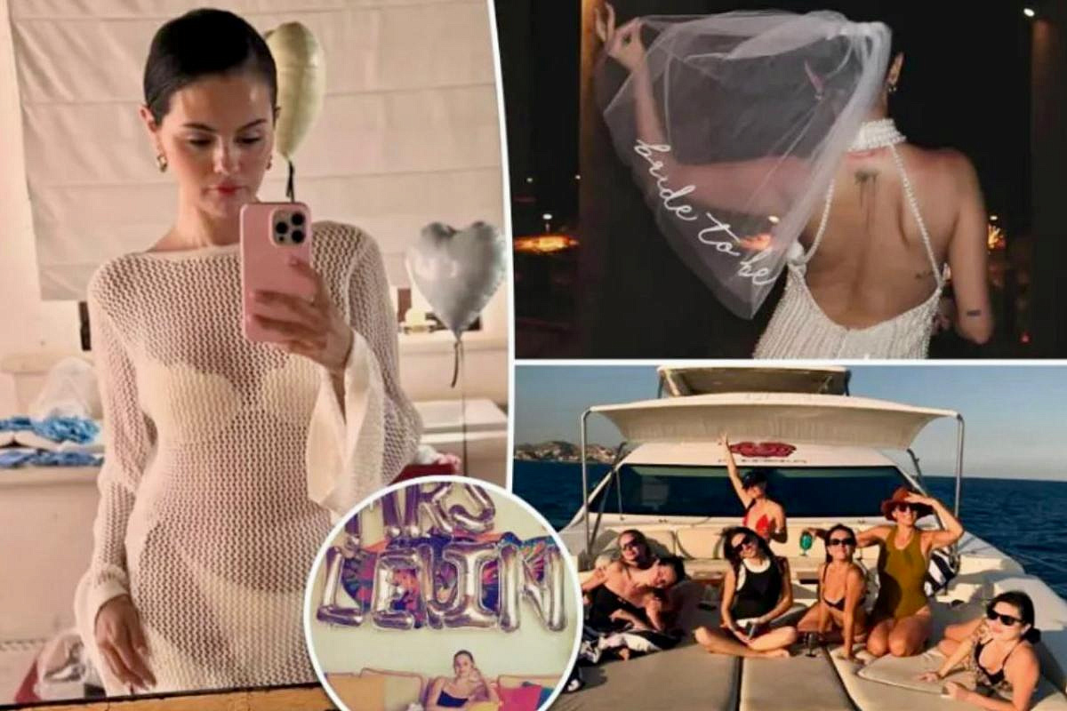 Гомес поделилась серией снимков и коротких видео с девичника в Кабо-Сан-Лукас. В кадре — белые платья и купальники, фата с