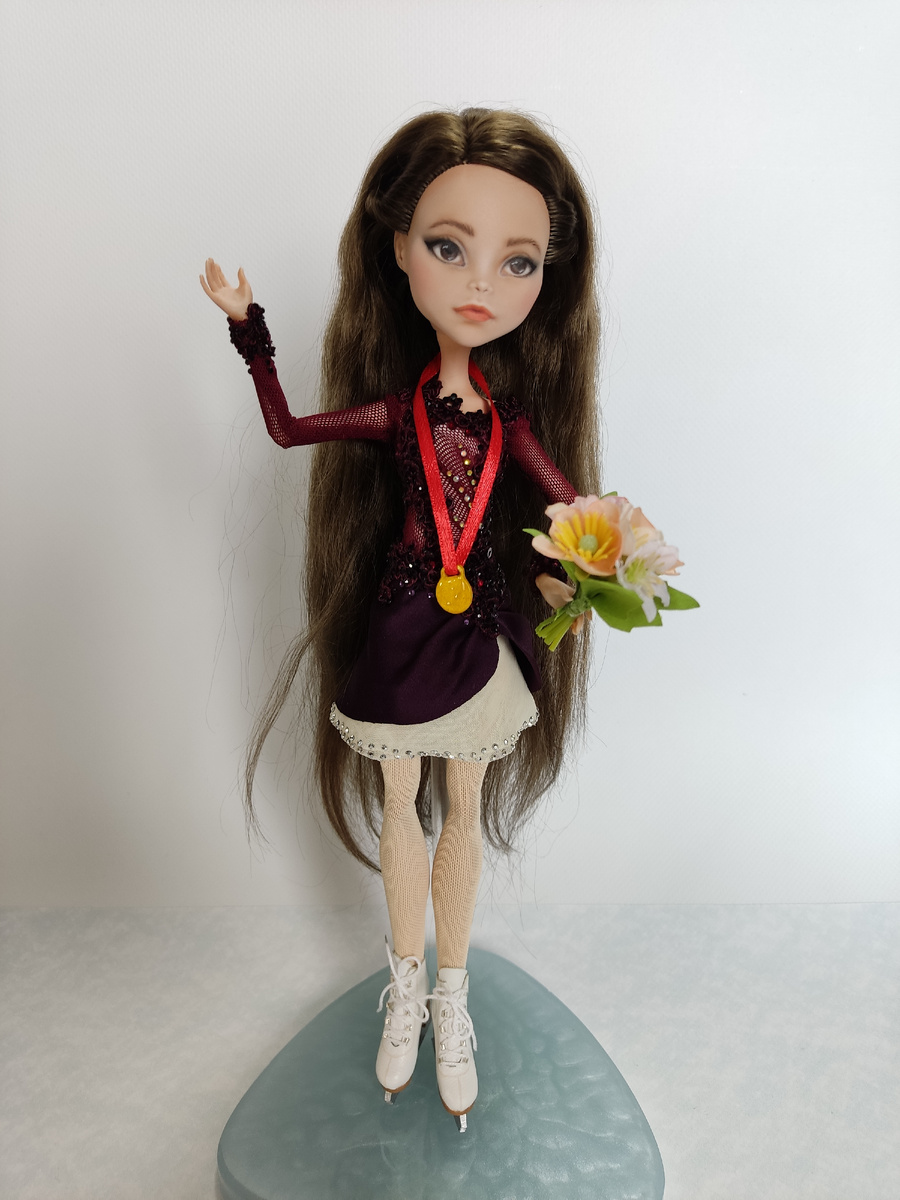 А через некоторое время мне написала девушка Дана и спросила, нельзя ли купить эту куклу. На тот момент кукла была уже у своей Хранительницы. Дана на всякий случай уточнила, не собирается заказчик дарить именно эту куклу самой Анне. Нет, она была подарена замечательной девочке, которая очень любит фигурное катание и нашу звёздочку.