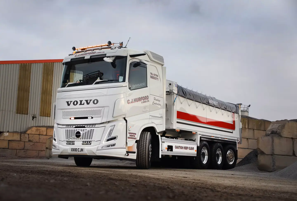 Приведенное выше введение приводит нас к последнему приобретению британской компании CJ Hurford & Sons. Это Volvo FH именно с пакетом Aero, оснащенный более длинной передней частью и системой камер для замены зеркал, а также автомобиль, являющийся задним самосвалом, предназначенным для работы на строительных и ремонтных дорогах. Отсюда и спальня с полностью плоской крышей, без какого-либо варианта Globetrotter, и в то же время специализированная система осей с tridm, то есть с тройной задней тележкой, обеспечивающей отличную маневренность.