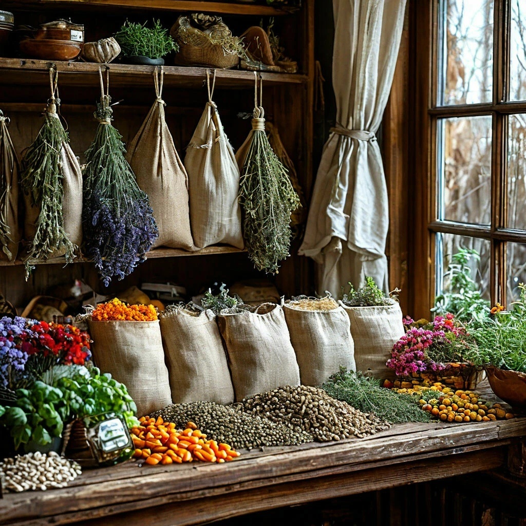 Сушить можно на чердаках и в печи, в духовке. Печь должна быть хорошо прогретой, а труба открытой, чтобы образующие при сушке пары вытягивались на волю. Высушенное сырьё хранят в банках с крышками или в плотных ящиках, выложенных бумагой, в полотняных или холщовых мешочках. Кроме корней осенью собирают листья, побеги, плоды. Брусника — лист, побеги.