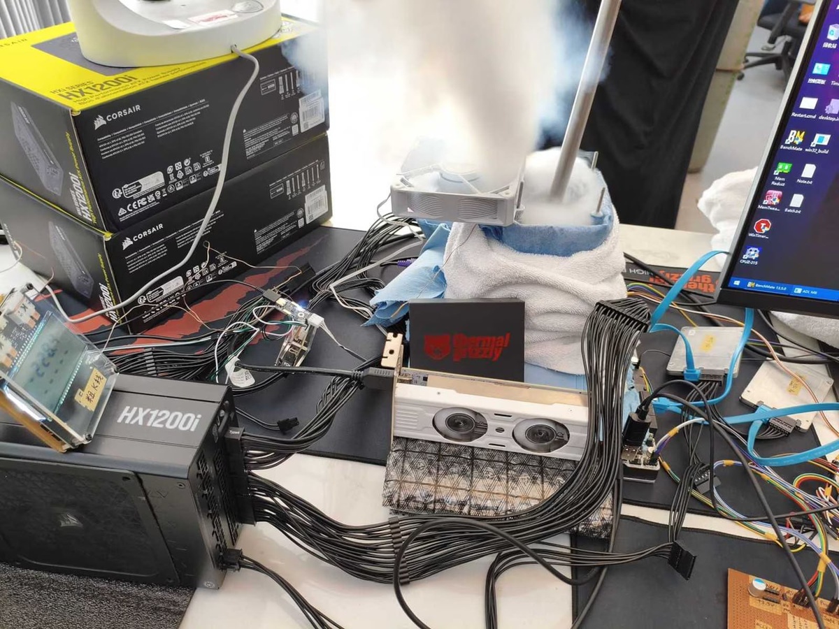 Оверклокер Wytiwx разогнал чип Intel Core i9-14900KF до безумных 9130,33 МГц ему удалось это благодаря охлаждению жидким гелием и материнке ROG Maximus Z790 Apex.