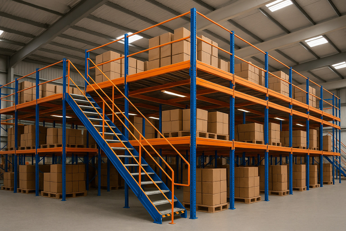 Мезонинные стеллажи — это многоуровневые конструкции, которые устанавливаются в складских помещениях для оптимизации пространства. По сути, они создают "второй этаж" и даже "третий этаж" внутри здания.