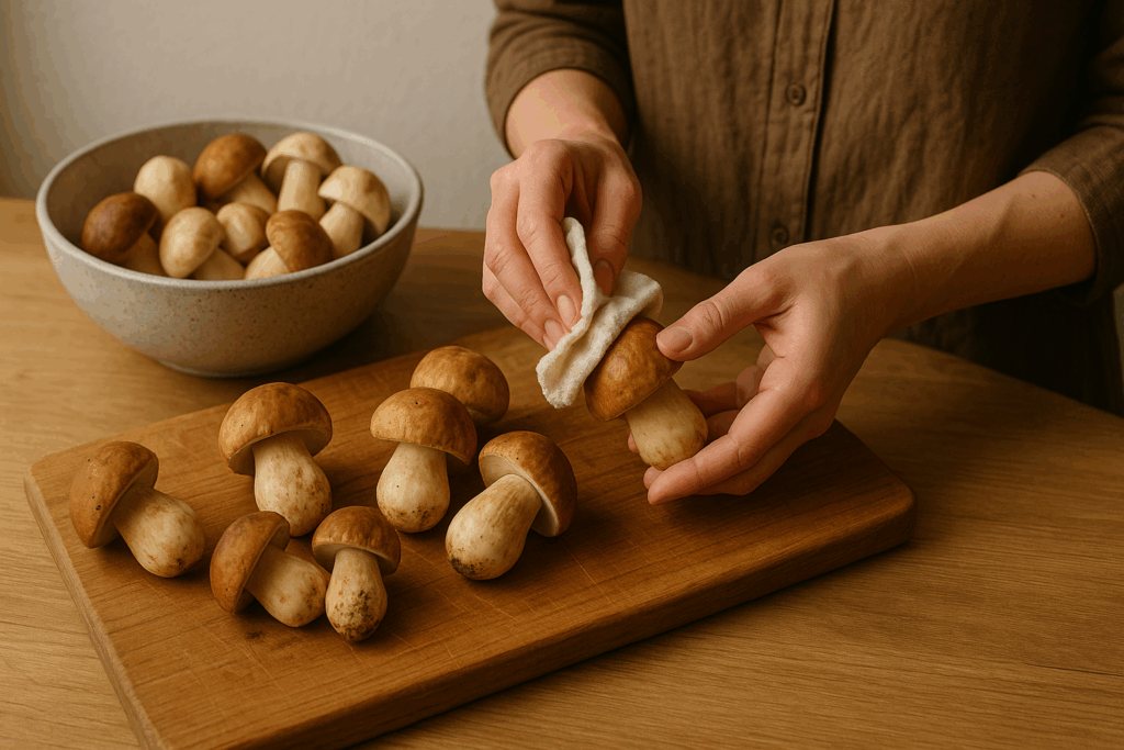 Грибы должны быть свежесобранными и не поврежденными. Мыть грибы не нужно, нужно лишь хорошенько обтереть влажной салфеткой.