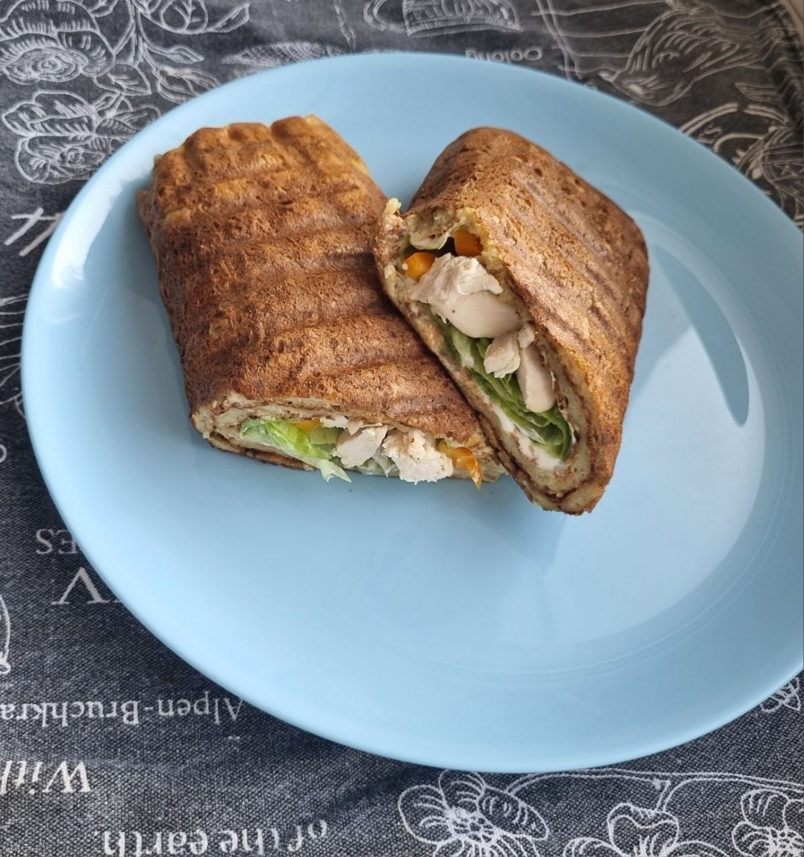 Незаметно подкралось 1 сентября. И со следующей недели мне нужно чем-то накормить ребенка, который не очень-то и любит, во-первых завтракать, во-вторых правильно завтракать))) Поэтому я вспомнила о своих экспериментах с роллами. Посмотрела, а рецепта-то и нет)) Исправляюсь, теперь есть))) Ролл Начинка Капусту пробила на блендере, вбила в нее яйца, сметану, соду, муку (муку пробовала как рисовую, так и сорговую, итак и так вкусно), блендернула еще раз и на электрогриле выпекла две большие основы для ролла. Можно конечно и на сковородке) Куриное филе разобрала на волокна, болгарский перец порезала тонкими полосками, айсберг порезала широкими полосками. Основу намазала творожным сыром, положила сверху айсберг, курицу, перец и завернула ролл. Потом отправила его еще раз в электрогриль, подсушиться и чтобы форма придалась) Получается очень даже полезный а-ля стритфуд. С очень большим количеством овощей незаметно подсунутых)))