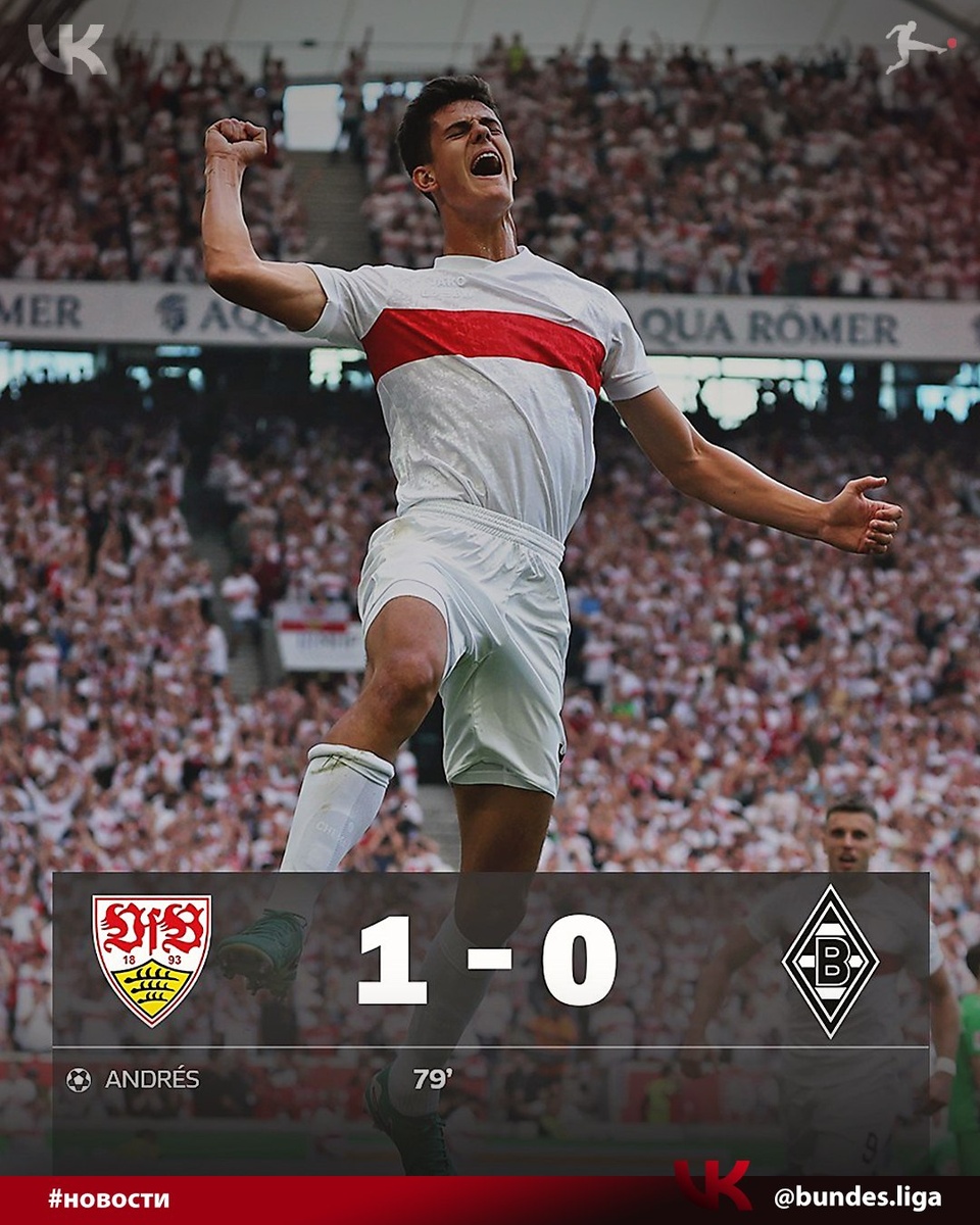 #Бундеслига ⚽ 2 тур. «Штутгарт» дожал «Боруссию» из Мёнхенгладбаха. Итог 1:0 ⚽ Чема Андрес забил единственный гол на 79 минуте с передачи Джейми Левелинга 👏