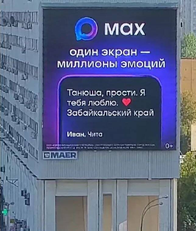 Читинец извинился перед девушкой с помощью нового мессенджера MAX, послание появилось на одном из экранов в Москве.