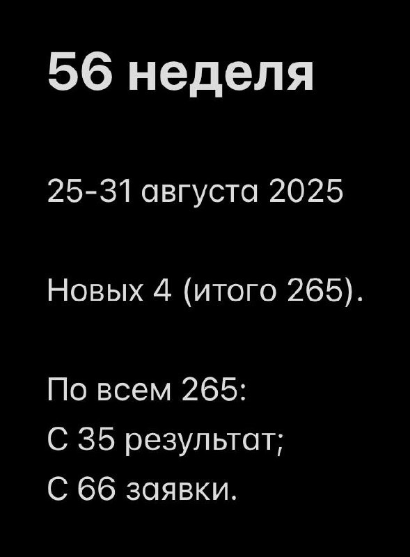 Финальная неделя лета 2025 🌞 Я в сборах в поездки, в дописании грантовой заявки и в планировании контента на месяц вперёд. В принципе всё сделано, кроме цели по #тест1000гипотез. Ставила себе на август добить до 300. В итоге на этой неделе вообще работала только со входящими заявками, они, кстати, были интересные и экспериментальные. Видимо, все начали просыпаться к сентябрю 😁 Ну а мне полезно будет сделать «зум аут» - уехать от операционки и посмотреть на всё со стороны (из Тульской области, Москвы и Краснодарского края 😌). Уже давно у меня мысли по пересмотру бизнес-модели, позиционирования, стратегии. Сейчас будет самое то время. Но тесты свои я, конечно, не бросаю, просто думаю, что они тоже изменятся. Буду делиться. По конверсии из тестов в результат, кстати, тоже ставила цель поднять с 12.5% до 15%. На сегодняшний день получилось 13.2%. Пока так. Продолжение следует 💫