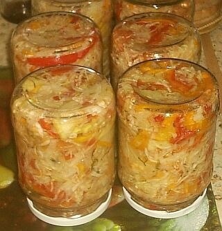 Взять: 1 кг. - капусты 1 кг. - помидор 1 кг. - огурчиков 1 кг. - сладкого перчика 1 кг. морковки Если чего-то из овощей нет —— то берете 2 кг. другого овоща. Всё порезать как на салатик, морковку на терке. Все овощи смешать. И туда добавить: раст. масло -200гр. уксуса 9% 200 гр. соль - 8 ч. ложек сахарок - 16 ч. ложек Все перемешать Поставить на огонь Довести до кипения И кипятить ровно 2 мин Сразу разложить по банкам. Закатать. Укутать Девочки.... такая вкуснота.... помидорки свежак, капусточка хрустит