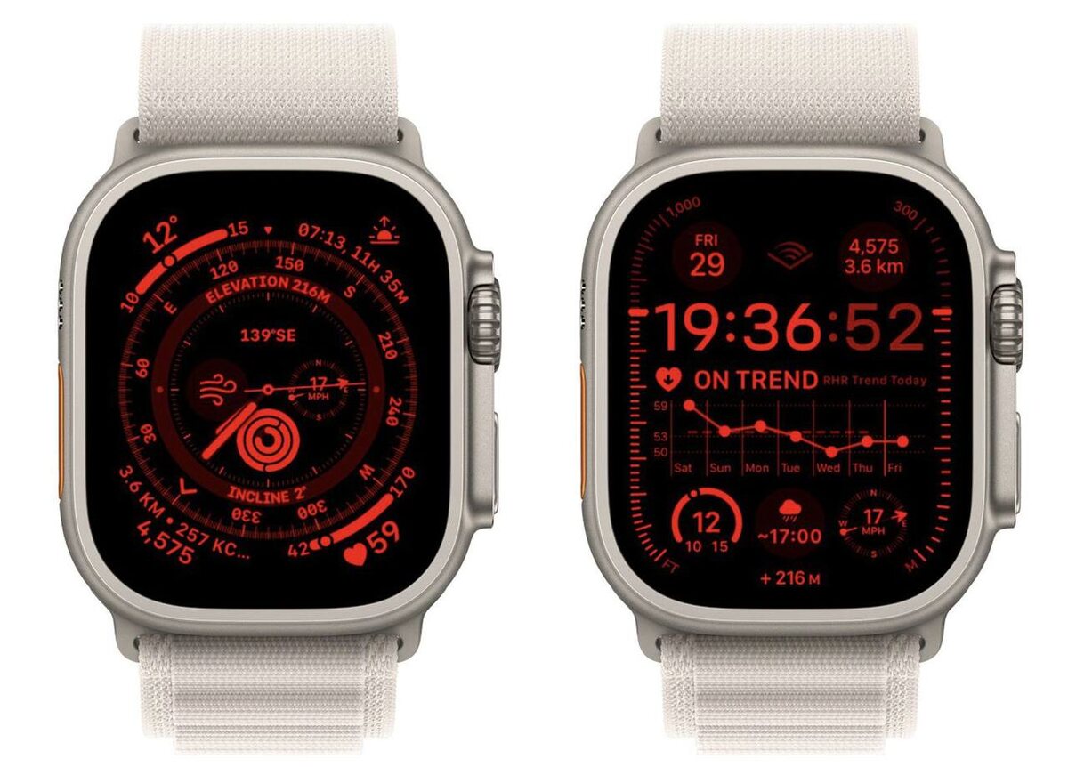 Ночной режим (красный интерфейс для удобного чтения в темноте) есть только на Apple Watch Ultra и Ultra 2.