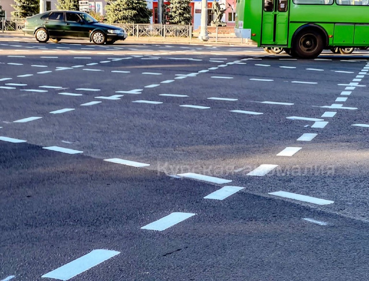 Курян насмешила дорожная разметка в центре на площади Перекальского