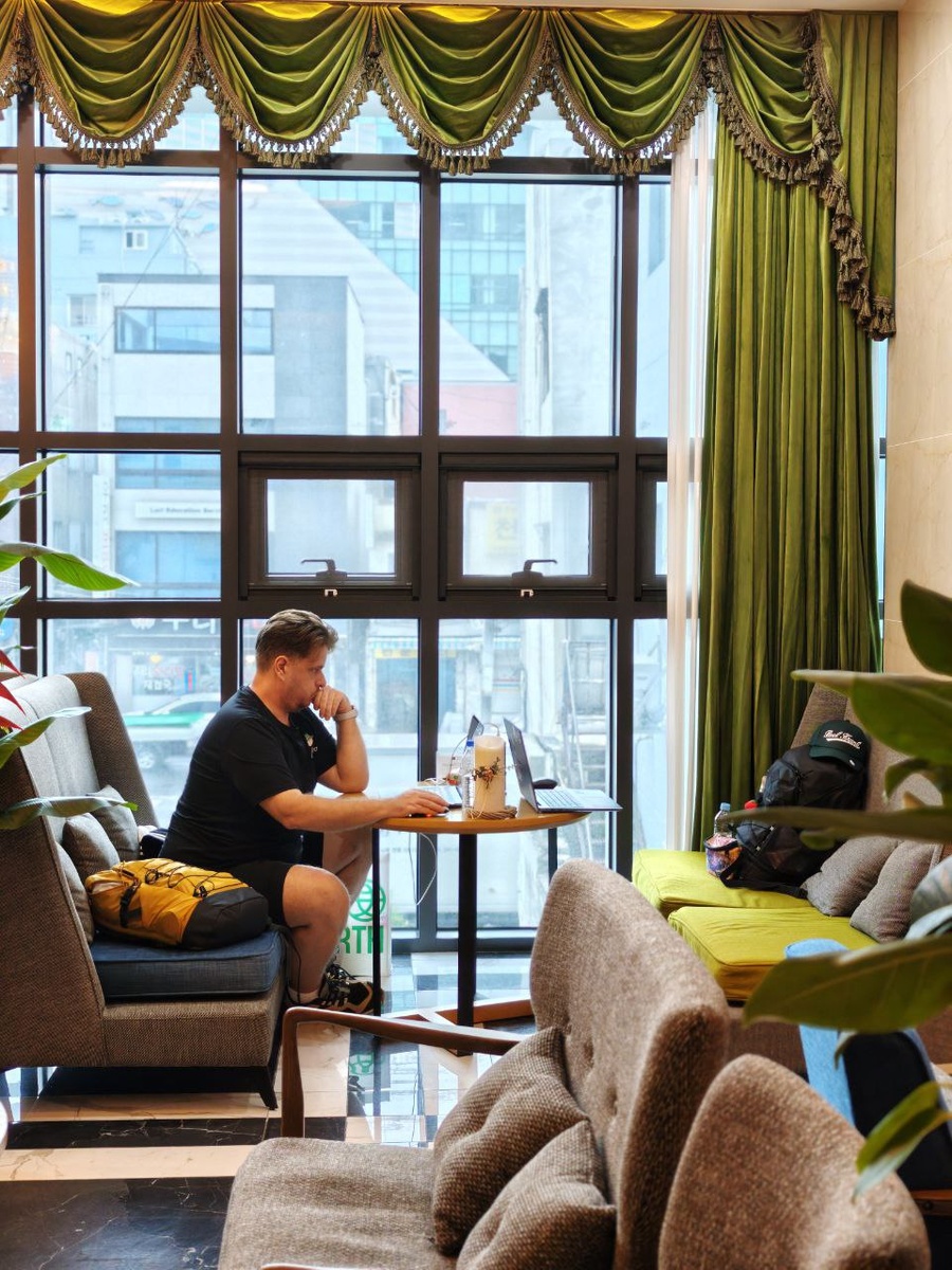 Сегодня утро у нас началось с переселения🤗 Нам очень понравился отель в котором мы остановились и решили его продлить. Остаёмся в Пусане ещё на несколько дней ♥️ Но из за того что у нас меняется вид из окна ждём заселение в другой номер в лобби😅 Когда речь идёт о переезде с маленькими рюкзаками, которые собирать 10 минут - это вообще не проблема 😁 За окном дождик и мы деловые все в работе☺️ #Пусан #ПутешествиеВПусан #ЮжнаяКорея #ОтдыхВКорее #Пусан2025 #ПоездкаВКорею #постранам #постранамсоняибоб