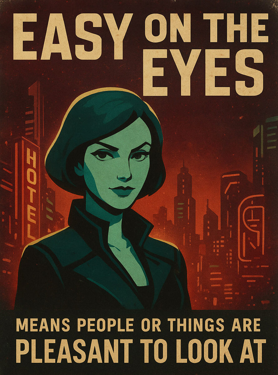 📄 «Easy on the Eyes» – Операция Комплимент 🧭 Кому: Кадетам ESL Дивизиона Стиля и Комплиментов 🔍 От: GS Департамента Тактического Английского и Идиоматической Точности 📅 Дата: 3.10.2025 🎙 Начало передачи Когда кого-то называют “easy on the eyes”, не думайте, что у него проблемы со зрением. Это значит, что на него приятно или привлекательно смотреть. Короче говоря: это комплимент — стильный, мягкий и немного поэтичный. 🎯 ЦЕЛЬ МИССИИ Подготовить кадетов к тому, чтобы: 🔹 Понимать, что “easy on the eyes” = приятно для глаз 🔹 Использовать выражение как мягкий, вежливый комплимент 🔹 Различать тон (он всегда теплый, никогда агрессивный) 🔹 Применять его в непринужденных, социальных или даже юмористических ситуациях 💬 ОТЧЕТ ОБ ОРИГИНЕ Идиома появилась в начале XX века, особенно в американском английском. Популярность пришла через фильмы и песни, где “easy on the eyes” означало обаятельного, привлекательного или красивого человека — без слишком прямого акцента. 🧠 ЗНАЧЕНИЕ И СТИЛЕВЫЕ