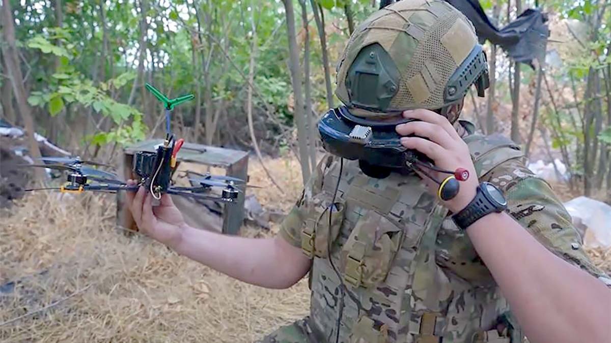 На экране перед воинами — изображение с разведывательного дрона. В поле зрения появляется гексакоптер противника — тяжёлый, грузовой, тот самый, что получил прозвище «Баба-Яга». Он способен нести сразу два миномётных снаряда и сбрасывать их с точностью до метра.