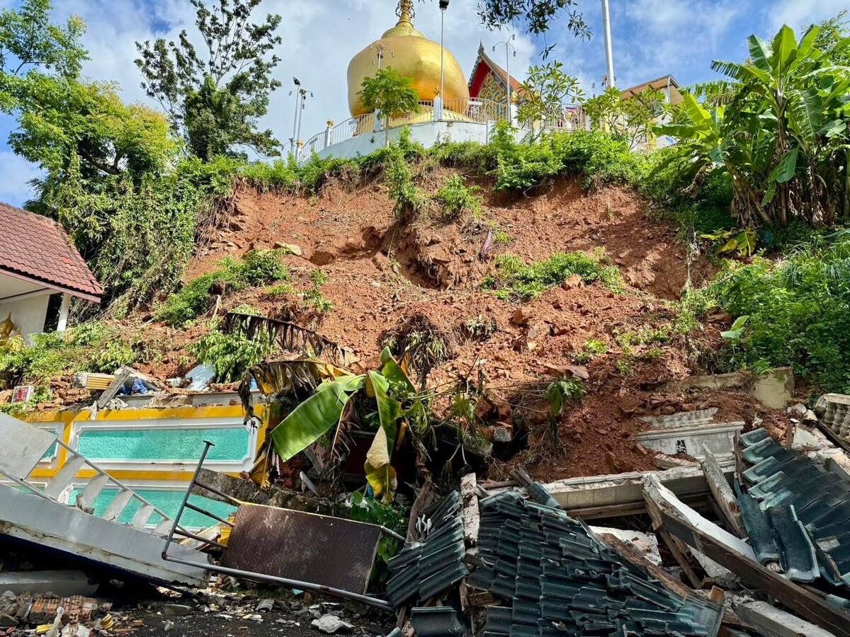 ⛰️ Сход грунта в Рассаде продолжается! 31 августа советник мэра района Рассадa проверил ситуацию на храме Ко Сире, где продолжаются оползни после сильных ночных дождей. Почва на склоне холма сильно пропиталась водой и продолжает сползать. Власти проверяют безопасность верхней большой ступы пагоды, которая также находится под угрозой разрушения ⚠️ 📢 Жителей и туристов просят избегать посещения опасных зон и проявлять максимальную осторожность. 🌴 Прислать новость | Подписаться | Смотреть другие новости