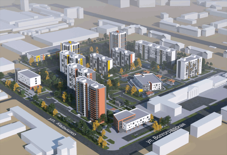 Помимо жилых домов, на этом участке предусмотрены места для детского сада на 210 воспитанников, многоэтажного паркинга на 520 машино-мест и многофункционального торгово-общественного центра микрорайона площадью 2 000–2 500 кв. м. Новую школу здесь возводить не будут — хватит мощностей расположенной рядом средней школы № 63.