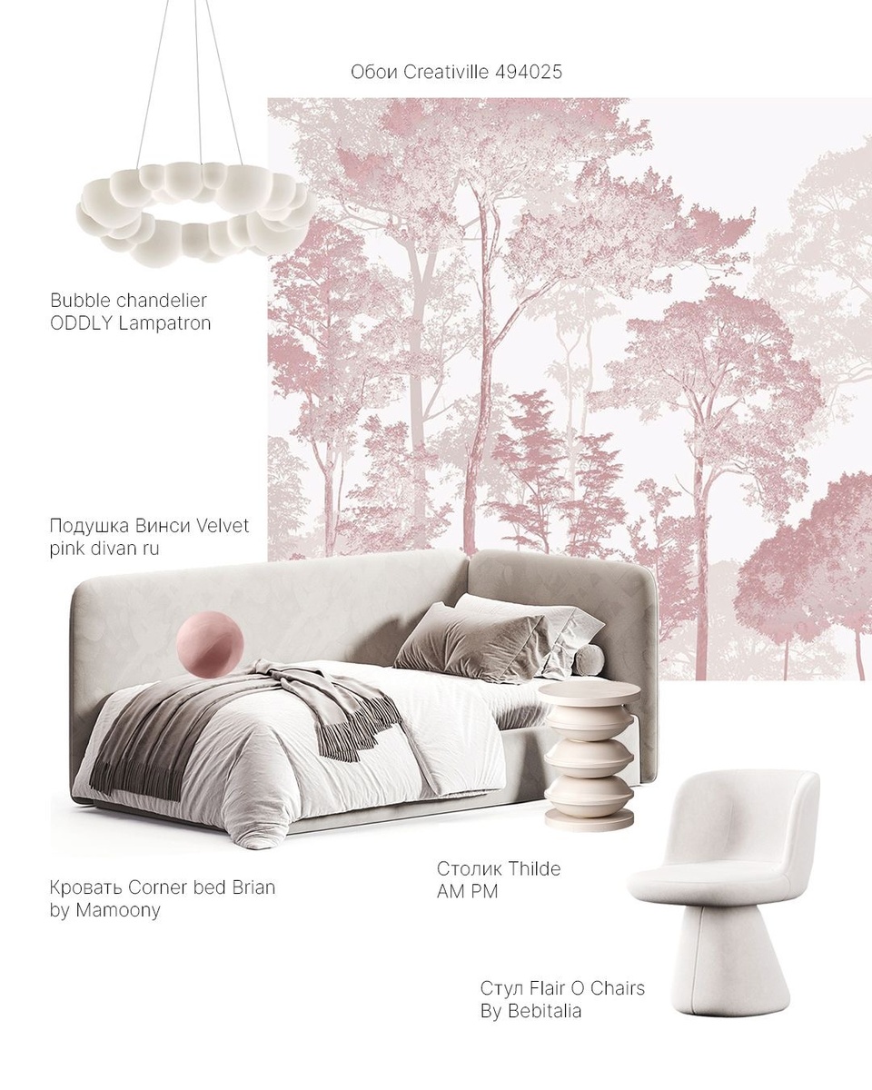 Детская — это и спальня, и игровая, и малая галерея творчества. Чтобы она не «расползалась» в хаос, соберём капсулу из предметов в спокойной палитре cloud white + розовый blush + теплый беж, с мягкими радиусами и тактильными фактурами. Ниже — все позиции по порядку, как на коллажах, с кликабельными артикулами (жмите на номер — откроется поиск на Ozon).