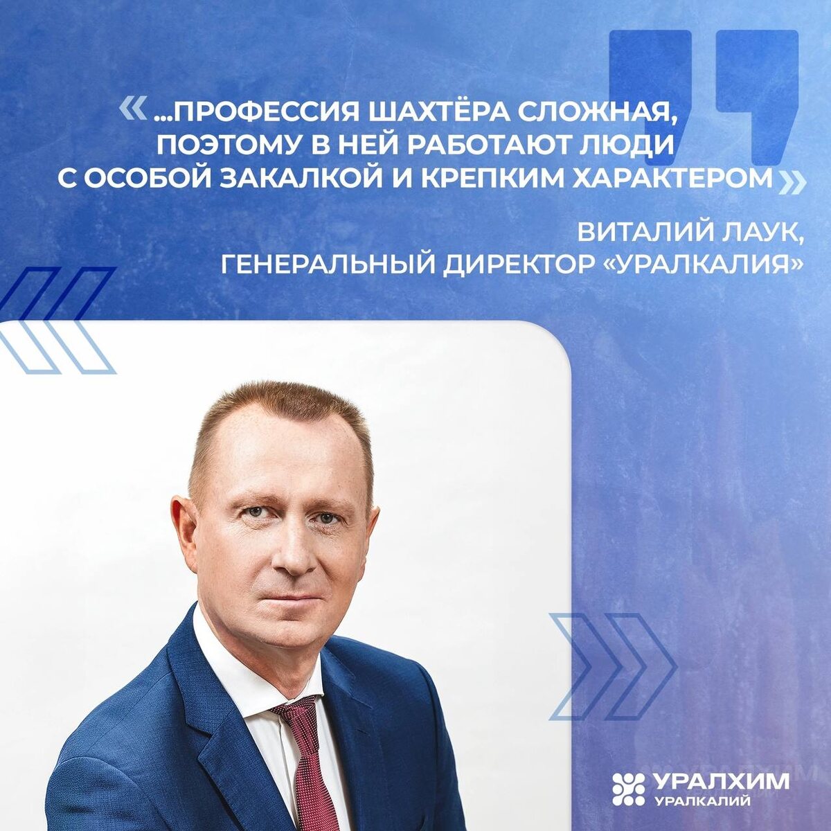 ⭐️С Днем Шахтёра поздравляет генеральный директор «Уралкалия» Виталий Лаук: «Дорогие коллеги, земляки! Поздравляю вас с профессиональным праздником! В этом году мы отмечаем 100-летие открытия Верхнекамского месторождения солей. Сегодняшние успехи «Уралкалия» — во многом заслуга предыдущих поколений калийщиков: первопроходцев и наших уважаемых ветеранов. Профессия шахтёра сложная, поэтому в ней работают люди с особой закалкой и крепким характером. Они продолжают славные традиции «Уралкалия», укрепляют авторитет горного дела и увеличивают вклад компании в развитие Березников, Соликамска и Пермского края. Впереди у наших шахтёров — новые рубежи и новые производственные рекорды! Желаю всем горнякам успешной и безаварийной работы, стабильности и новых трудовых достижений. Всем, кто связал свою трудовую судьбу с шахтёрским делом — крепкого здоровья, счастья и семейного благополучия! Спасибо каждому из вас за смелость, труд и преданность профессии!» #ДеньШахтёра