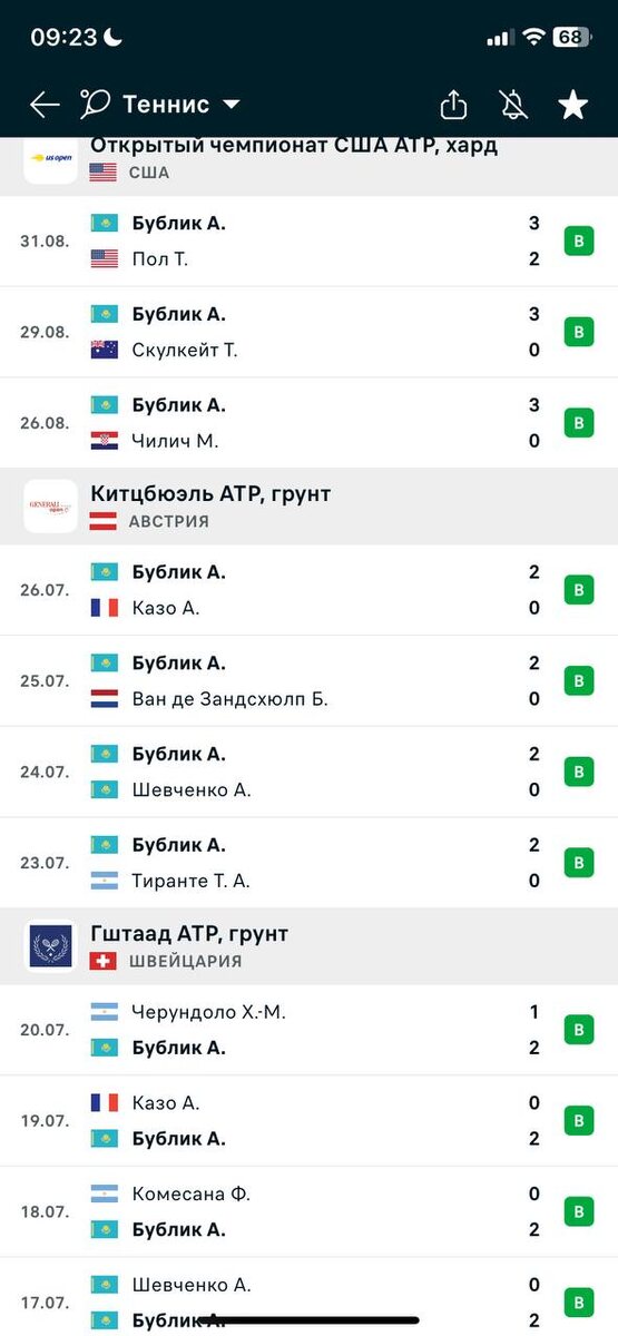 Как же я рад за этого парня⚡️ Выше писал о моем любимом теннисисте - Саше Бублике. Так вот оказывается он ещё два турнира ATP забрал, там конечно ребят из топ-10 не было, но все из топ-100. А сейчас он идет на серии из 11 побед и играет в US OPEN в 1/8 финала снова с первой ракеткой мира Яником Синнером (которого он уже выигрывал). Сегодня в 19:00. Буду болеть за эту машину🔝