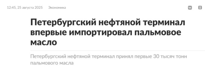 Удивительная новость: Санкт-Петербургский нефтяной терминал - один из ключевых операторов наливных грузов в балтийском регионе - впервые за свою 30-летнюю историю принял партию... пальмового масла. Пальмового и пальмоядрового, если быть точнее - именно так сообщили в компании. Объем партии этого груза, который был принят из танкеров и перегружен в железнодорожные цистерны, составил 30 тысяч тонн. В компании сообщают, что она начала реализацию программы диверсификации грузовой базы и теперь может не только заниматься экспортом, но и работать в обратном направлении, обеспечивая бесперебойную доставку импортных наливных грузов в регионы России и страны СНГ. Это была "первая ласточка", и далее подобная практика, вероятно, повторится, а может даже перейдет на регулярную основу. Что можно сказать по этому поводу... Ну, во-первых, то, что НЕФТЯНОЙ терминал, который изначально строился и предназначался для перевалки нефти, решает диверсифицировать свою работу приемкой пальмового масла (???) пр