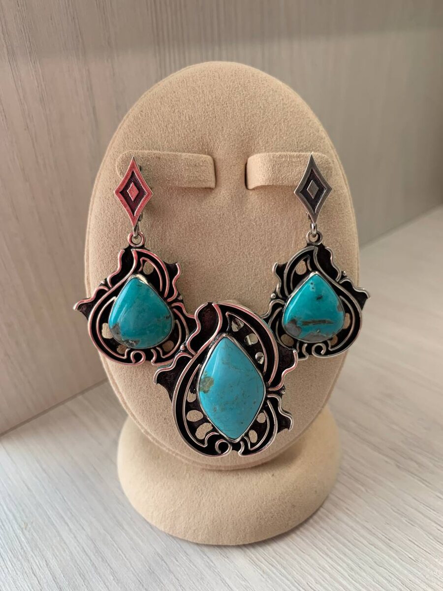 💎СЕРЕБРО 💎РУЧНАЯ АВТОРСКАЯ РАБОТА 💎БИРЮЗА АРИЗОНА💎РАЗМЕР КОЛЬЦА 18,5💎ВЕС ОДНОЙ СЕРЬГИ 7.58 ДЛИНА 5см💎ЦЕНА 14500💎