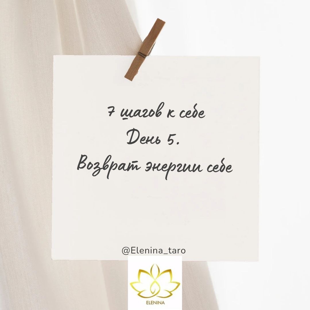 🌿 День 5. "Возврат энергии себе" 🖤 Ты уже увидела свой архетип (День 1), назвала правду (День 2), нашла фразу-сценарий (День 3), и увидела точку, где всё ломается (День 4). Сегодня - важное: как перестать сливать энергию в обиды и ожидания, и вернуть её себе. 🔮 Мини-диагностика: "Куда утекает моя энергия?" Закрой глаза и задай себе вопрос: На что я трачу больше всего сил в отношениях/в одиночестве? 1️⃣ Обида ("почему он так со мной?"). 2️⃣ Контроль ("надо держать всё под контролем"). 3️⃣ Ожидание ("вдруг он сам позвонит"). 4️⃣ Сравнение ("у других получается, а у меня нет"). 📌 Выбери свой вариант. Это твой "слив". 🌸 Практика: "Возврат" 1. Напиши на листе: "Я больше не отдаю энергию … (обиде/контролю/ожиданию/сравнению)" 2. Сожми лист в кулак → и скажи: "Я возвращаю это себе". 3. Сделай 5 глубоких вдохов и выдохов. На вдохе представляй, что энергия возвращается в твоё тело. На выдохе - отпускай старый сценарий. 💌 Маленький инсайт: энергия - это твоя сила. Чем меньше её ух