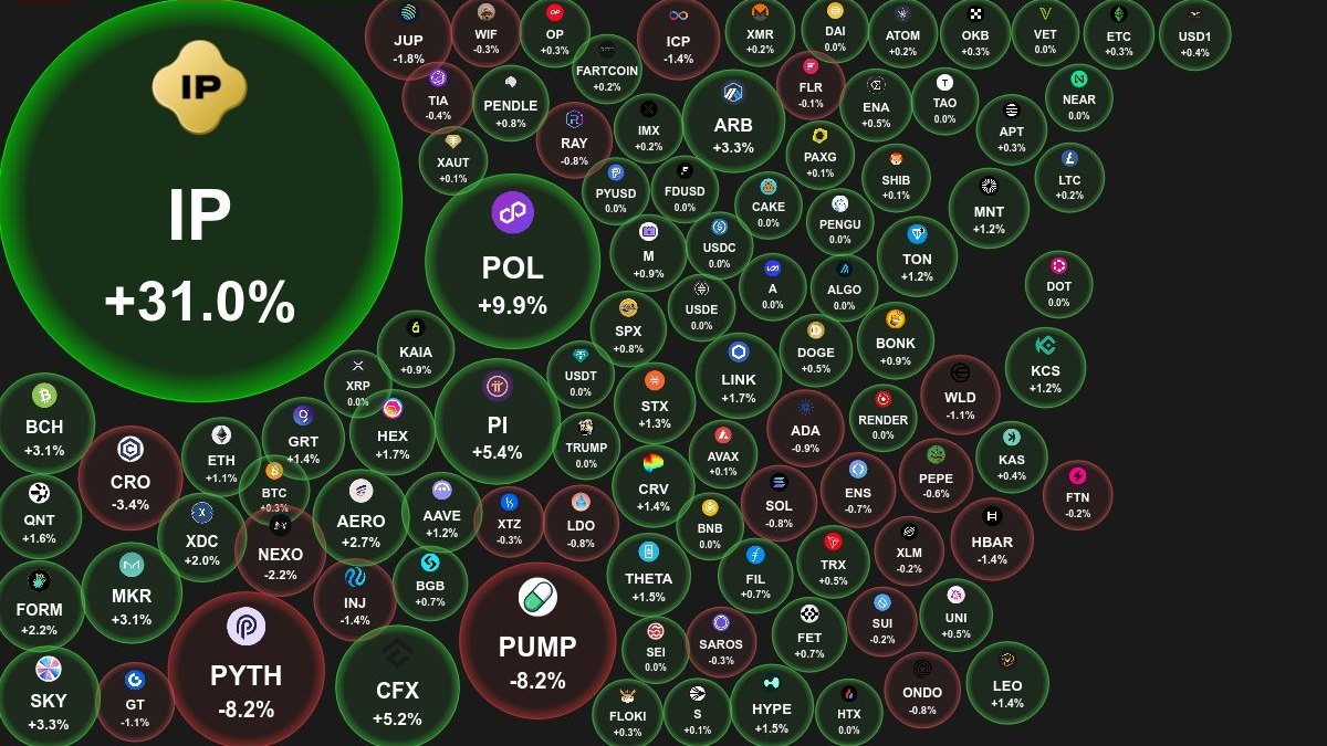 📊 Ежедневный обзор рынка криптовалют от Coinbubbles.ru 🗓 31.08.2025 09:30 по Москве. 🔗 Посмотреть на сайте 📈 Лидеры роста (из ТОП-100): 🟢 Story (IP): $7.9690 (+31%) 🟢 POL (prev. MATIC) (POL): $0.2681 (+9.9%) 🟢 Pi Network (PI): $0.3853 (+5.4%) 📉 Лидеры падения (из ТОП-100): 🔴 Pump.fun (PUMP): $0.0033 (-8.2%) 🔴 Pyth Network (PYTH): $0.1881 (-8.2%) 🔴 Cronos (CRO): $0.2937 (-3.4%) 🔍 Основные метрики: 🟢 Общая капитализация: $3783.90 млрд (+0.37%) 🔴 Общий объем торгов: $109.40 млрд (-45.74%) 🔴 Доминация Bitcoin: 57.15% (-0.06%) 🟢 Доминация Ethereum: 14.18% (+0.12%) 🟢 Индекс страха и жадности: 48 / 100: СТРАХ (+9) ⚪️ Индекс Альтсезона: 59 / 100: НЕ АЛЬТКОИН-СЕЗОН (0) 📖 Интересные статьи: 👉 Биткоин или золото: куда вложить деньги в 2025 году 👉 Сравнение биржевых токенов: преимущества владения GateToken (GT). 👉 Pectra: крупнейшее обновление Ethereum 2025 года — что ожидать?