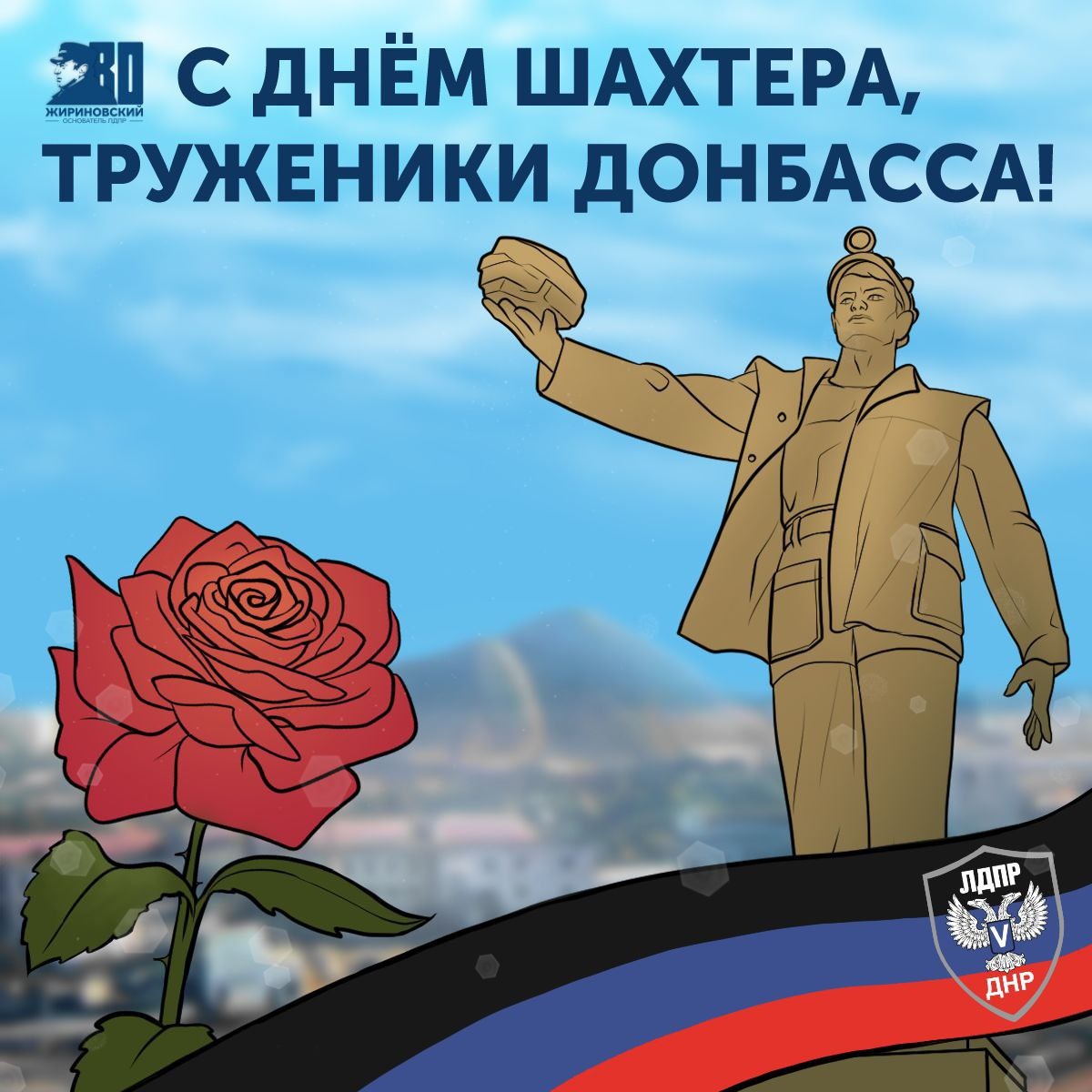 📣 ЛДПР в ДНР поздравляет тружеников Донецкой Народной Республики с Днем шахтера, а всех дончан – еще и с днем нашего любимого города
