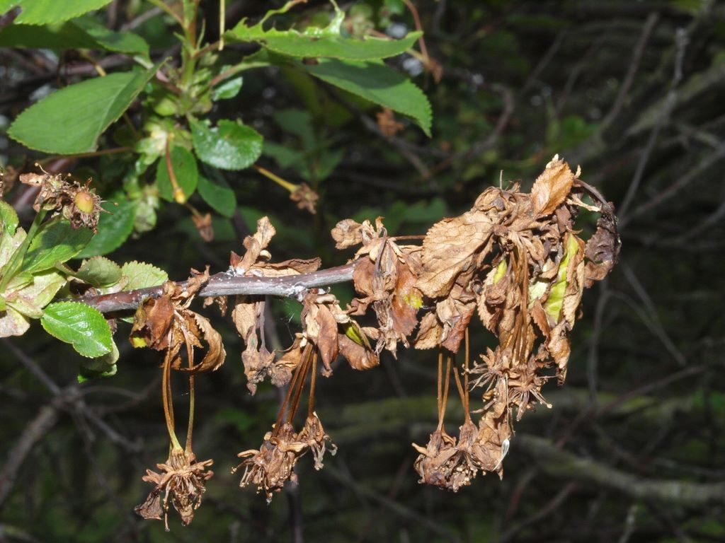 • Сухие цветы: Цветы, пораженные монилиозом, засыхают и опадают.