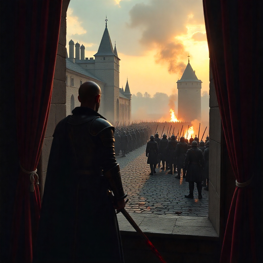 Стальные ворота с грохотом рухнули под тараном. Эрих стоял у окна, палаш уже обнажен. Лезвие ловило первые лучи солнца – холодный отсвет на его лице с мрачной улыбкой.