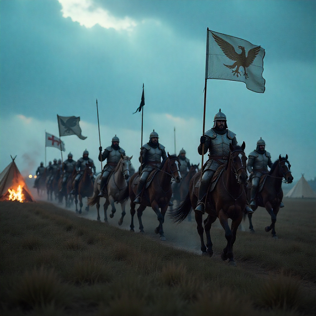 Он исчезает. Слышен конский топот — войска трогаются.