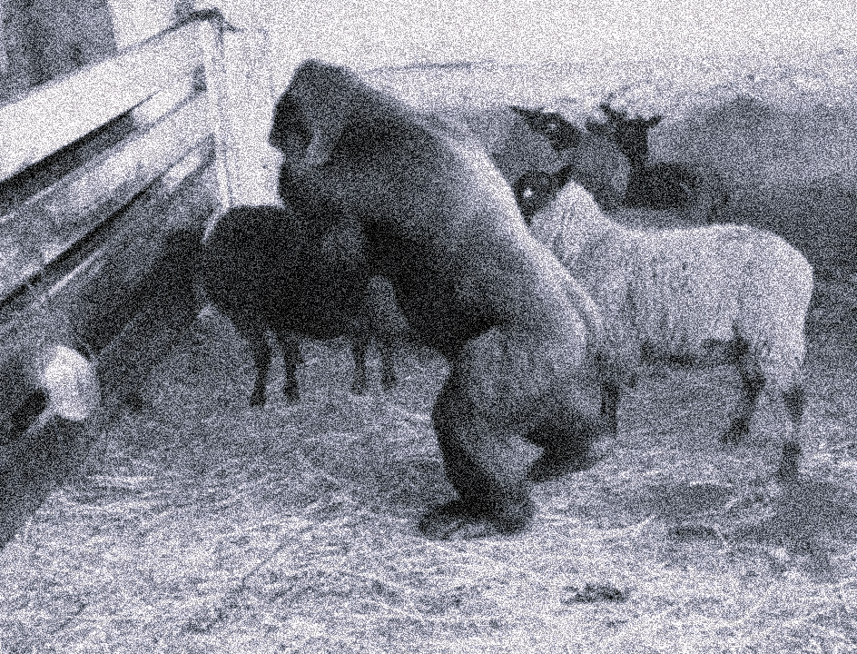 Сегодня на моём канале выйдет нечто, то, что я смогу вам в основном показать, так как информации пока ещё мало об этом случае, что произошёл в 2016 году где-то в Горной Шории. Точное место не могу сказать, почему мужчина молчал все эти годы, с которым то всё происходило. Вернее, у которого на дворе в сараях крали овец посреди ночи, и этот вор попался на камеру видеонаблюдения. После просмотров этих снимков, взятых с камер, сердце начинает бешено колотиться. Итак, давайте немного посмотрим на снимки, их у меня пять экземпляров, ну и в процессе я расскажу, что произошло. Самое интересное, обратите внимание: сейчас я вам это покажу на снимке. Этот зверь подкрался к овце, которая стоит спиной. Все остальные, что были ближе, просто стояли и смотрели или ждали. Может, действительно были под гипнозом? Итак, смотрите: он выбрал барана, который дальше всех стоял к нему спиной. Как мы знаем, в России гориллы не водятся. И если это не маскарад, то мы на пороге открытия нового вида животного, ну
